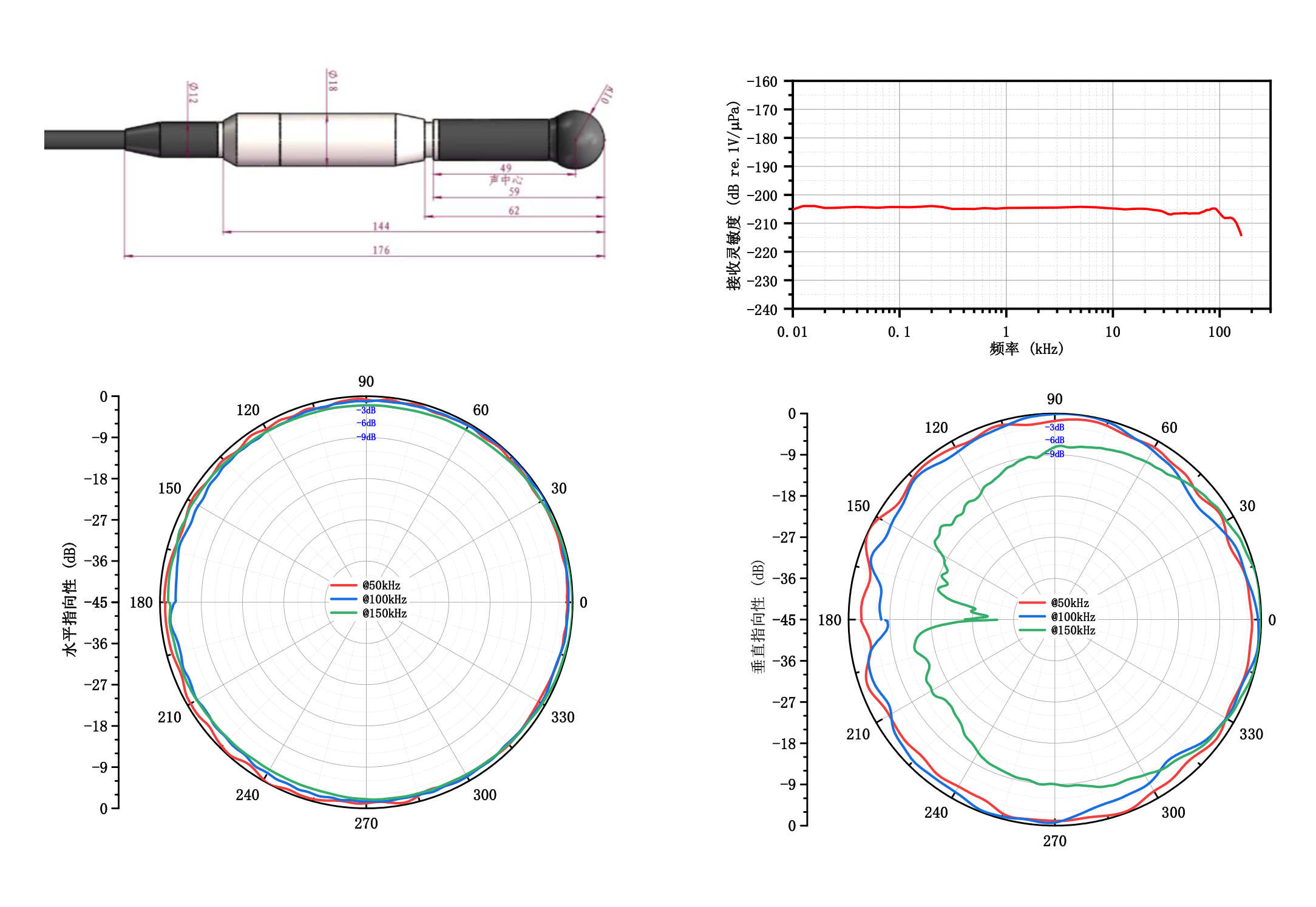 接收灵敏度 | -207dB±3dB re.1V/μPa |